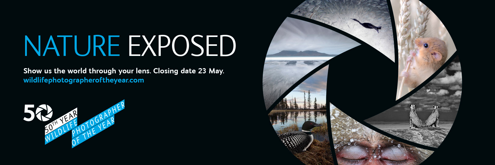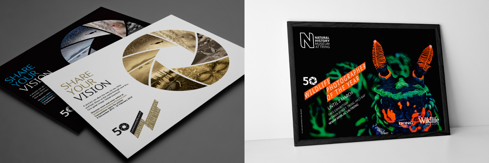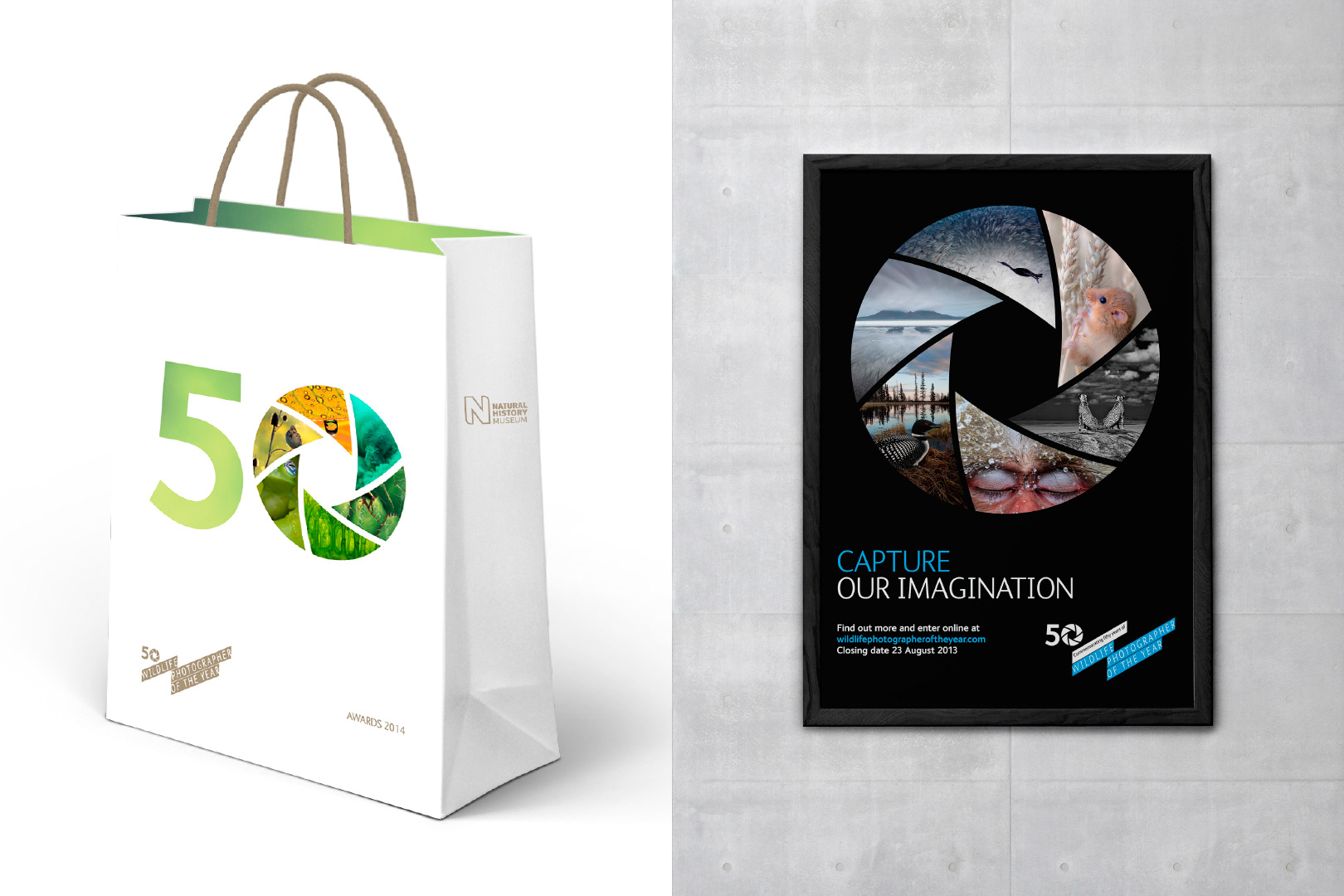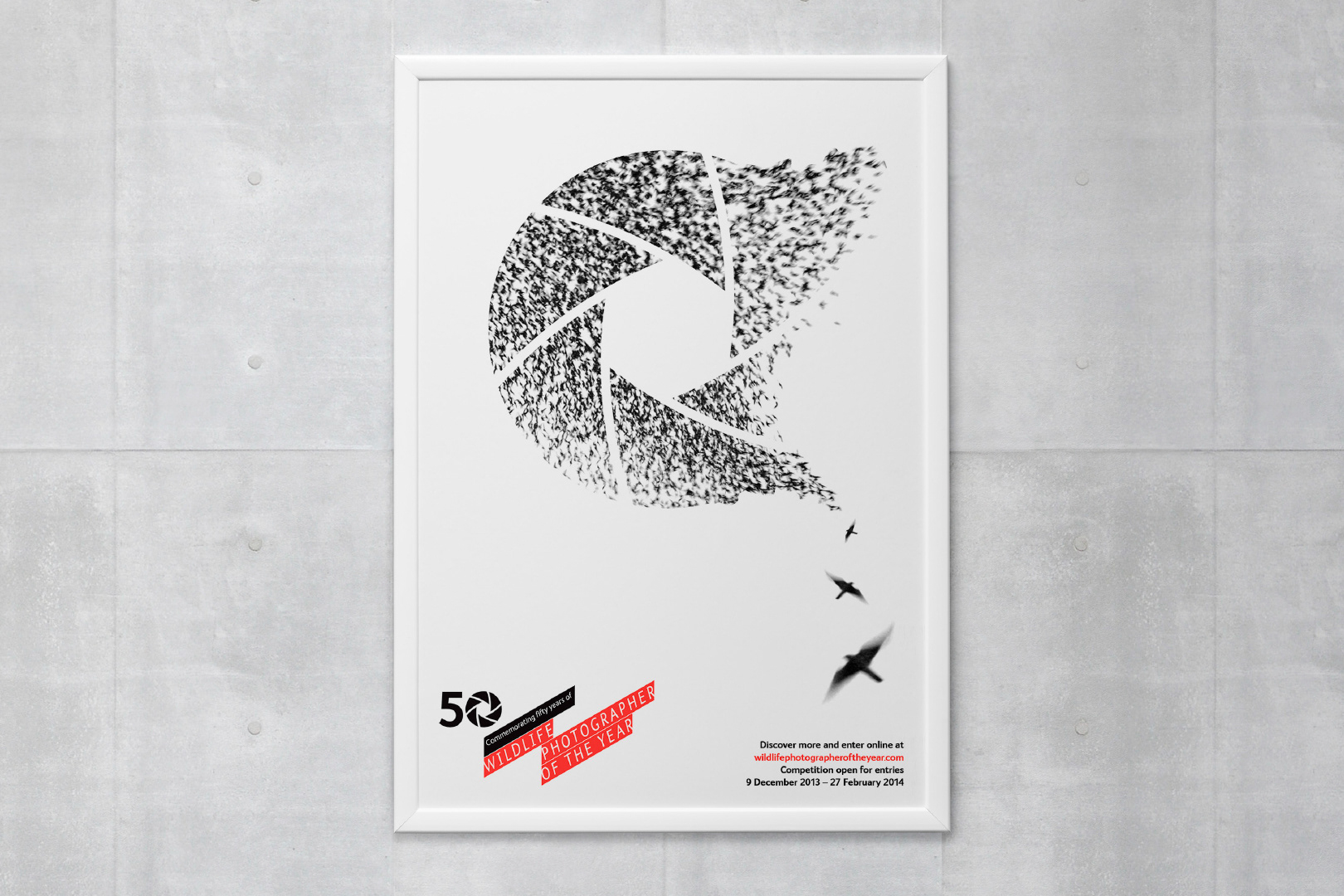 Advertising and communications for the 50th annual Wildlife Photographer of the Year awards. The 50 ‘aperture’ device was designed to augment the existing WPY branding, giving the event a dynamic and recognisable identity.